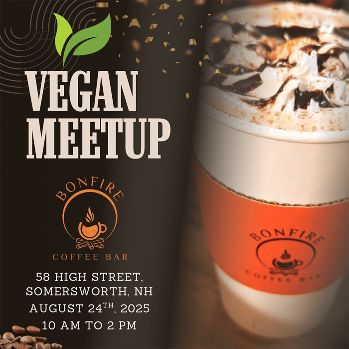 NHARL will have our next vegan meetup on Sunday, August 24 at Bonfire Coffee Bar (58 High Street) in Somersworth, NH.